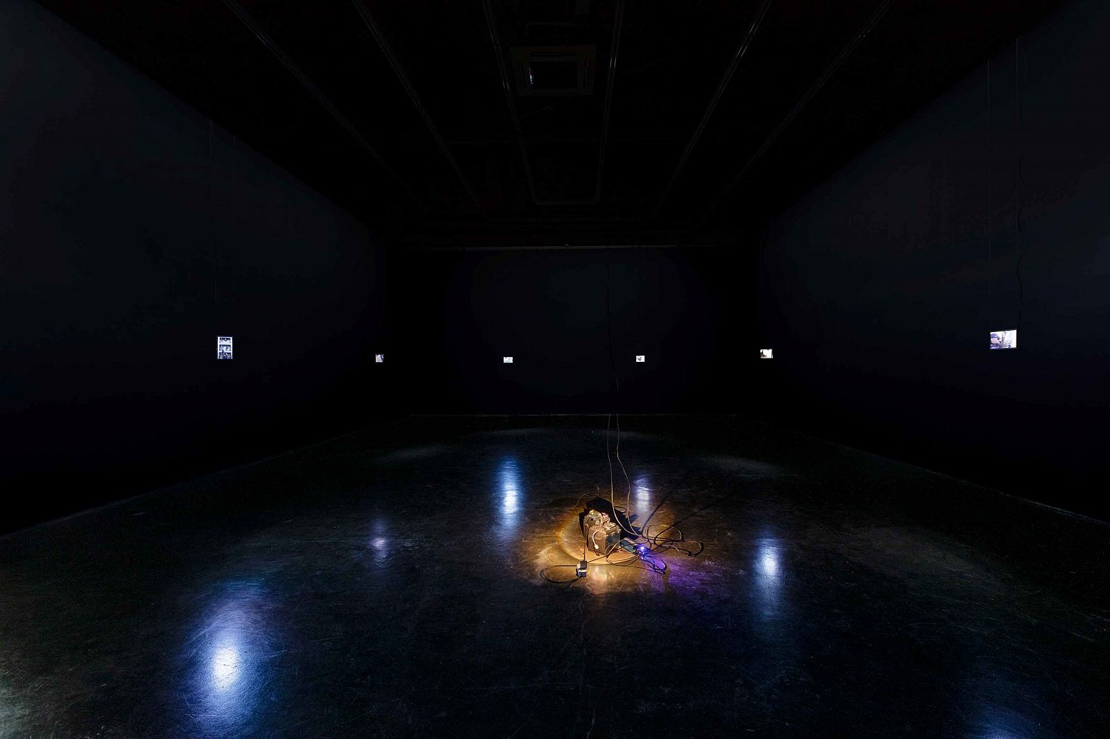 To save power, every part of the exhibition space has been designed to with an eye to economy. However, another part of the show — the livestream that captured so many viewers — is broadcast independently of the things powered by the battery. The artist livestreams his bike ride outside of the gallery space, leaving the glaring monitors like apparitions hovering in the air of the gloomy exhibition space, becoming the least important part of the show. They seem, rather, like battery indicators, sending out a slightly stronger signal in the instant when power runs out. In the pitch-black gallery, visuality and aesthetic sense no longer work in tandem, and instead devolve into simple sensory systems, instruments for Ge Yulu to induce audience anxiety. The exhibition space’s variable light conditions do not allow it to transform from a white box or black box into a new model of visual presentation; it sheds its last bit of piteous aura, and transforms into an expendable place, given to viewers only to prove that wide-travelling concept — to power a gallery space by riding a bicycle. The actual site of the exhibition no longer matters, not because its own functionality has been stripped away, but because it lacks the power to attract more attention.