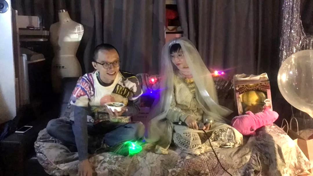NZTT Sewing Co-op’s early days saw tentative explorations of the “intimate,” focusing first on women’s pent-up emotions resulting from matrimony and labor in the nuclear family context, and the “duty” that keeps them tied up with household minutiae. Then, at the end of 2018, NZTT Sewing Co-op was given a commission by a friend, curator, and fellow SoengJoengToi “proprietor” Li Xiaotian: wedding outfits for her and her fiancé Wu Wenli. And so, newly married, Li and Wu made their grand entrance into SoengJoengToi decked out in outfits pieced together from their parents and their own old clothes, adorned with aluminum cans, neighborhood shop receipts, and bubble wrap. Brown cloth, soft to the touch, epitomized intergenerational intimacy while allowing the lucky couple to give the finger to traditional matrimony—in a dignified manner.