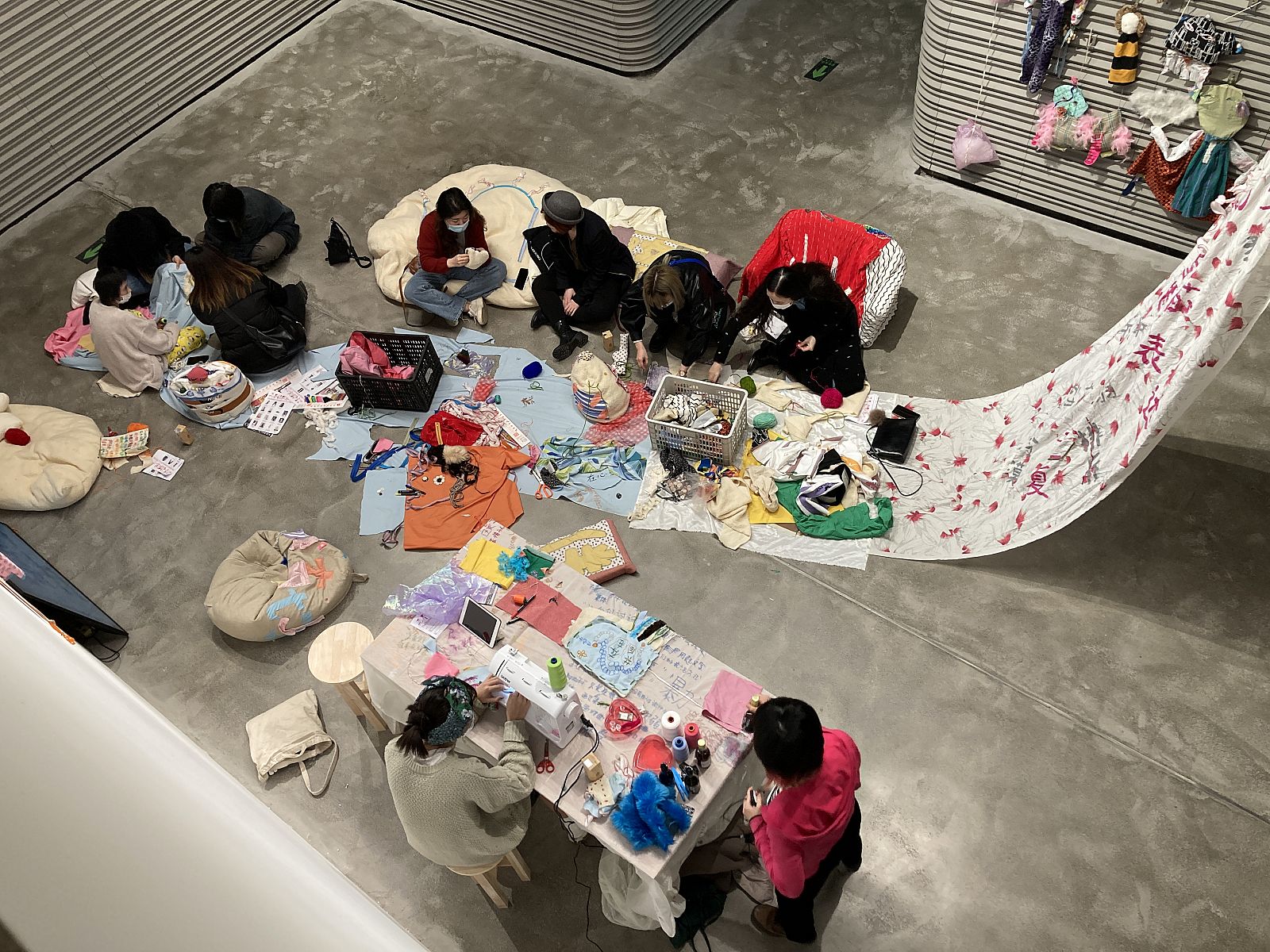 This deliberate practice involved continuity and rhythm, and soon became a new theme for them as artists. Around the beginning of the coronavirus pandemic, they started “afternoon bubble tea” party spaces online, with friends DJing and playing love songs. Amid this proactive outreach to a fresh audience, they interspersed the programming with fragments of dialogue about blurred boundaries in intimate relationships, playing off song lyrics about intimacy or pain between various actors. Each NZTT Sewing Co-op member had to overcome her shyness, like a clam forcing itself to open its shell just a crack and embrace the grit with sincerity and vulnerability.
