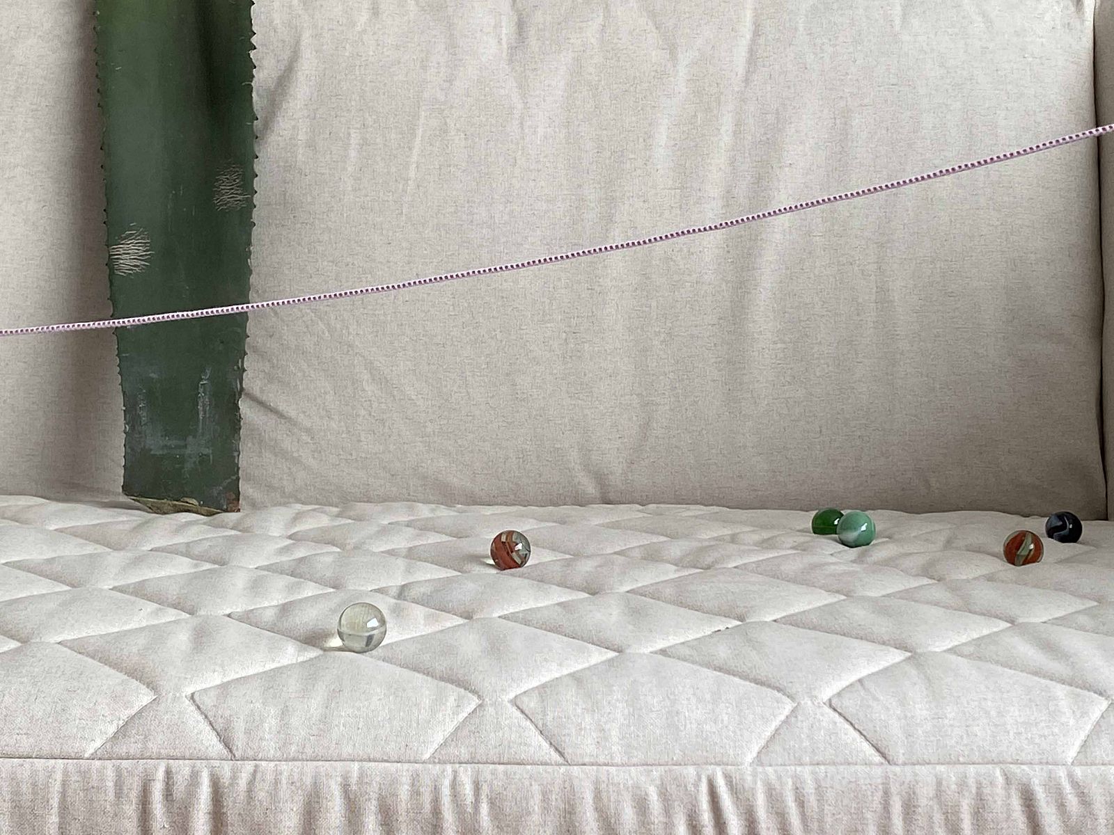 The agave leaves I cut off with a saw sit next to my child’s crib. The liquid seeping from their wounds had already stopped, and they’re propped carefully against the railing and the soft pillows. Death nurtures life across species, languages, and gestures. It’s a gradual, partial, conscious dormancy. My body splits off to produce a new body, and I find that every organ and part has been ordered to take on new functions. At any moment a new finger could grow from my left hand, my shoulders could sprout wings. My body’s boundaries grow blurry — or rather, the thing whose boundaries grow blurry is not just my body. The bed is now the ideal vessel: here there is sleep and waking, resting and rising, motion and stillness, male and female, the living and the dead.