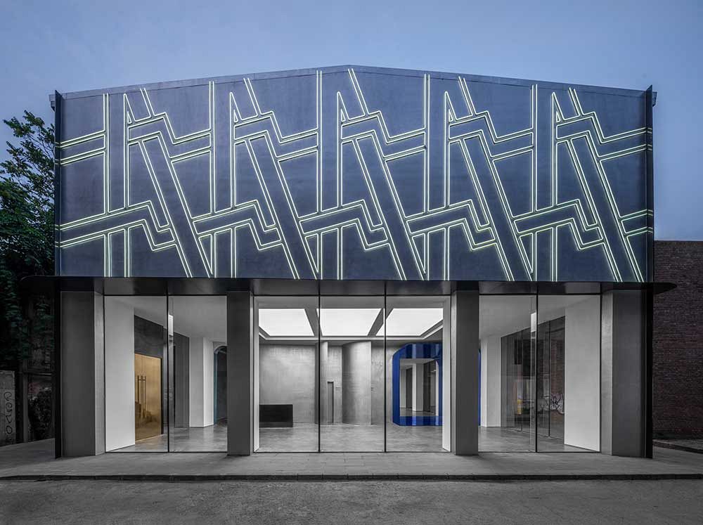 Designed by renowned Chinese conceptual contemporary artist Liu Wei and completed in 2022, MACA’s architectural space boasts a futuristic aesthetic with elegant geometric lines and expansive silver, blue, and green tones. Spanning approximately 700 square meters, the two-story structure includes large exhibition halls on both floors and a versatile foyer space for educational programs, academic discussions, or events.