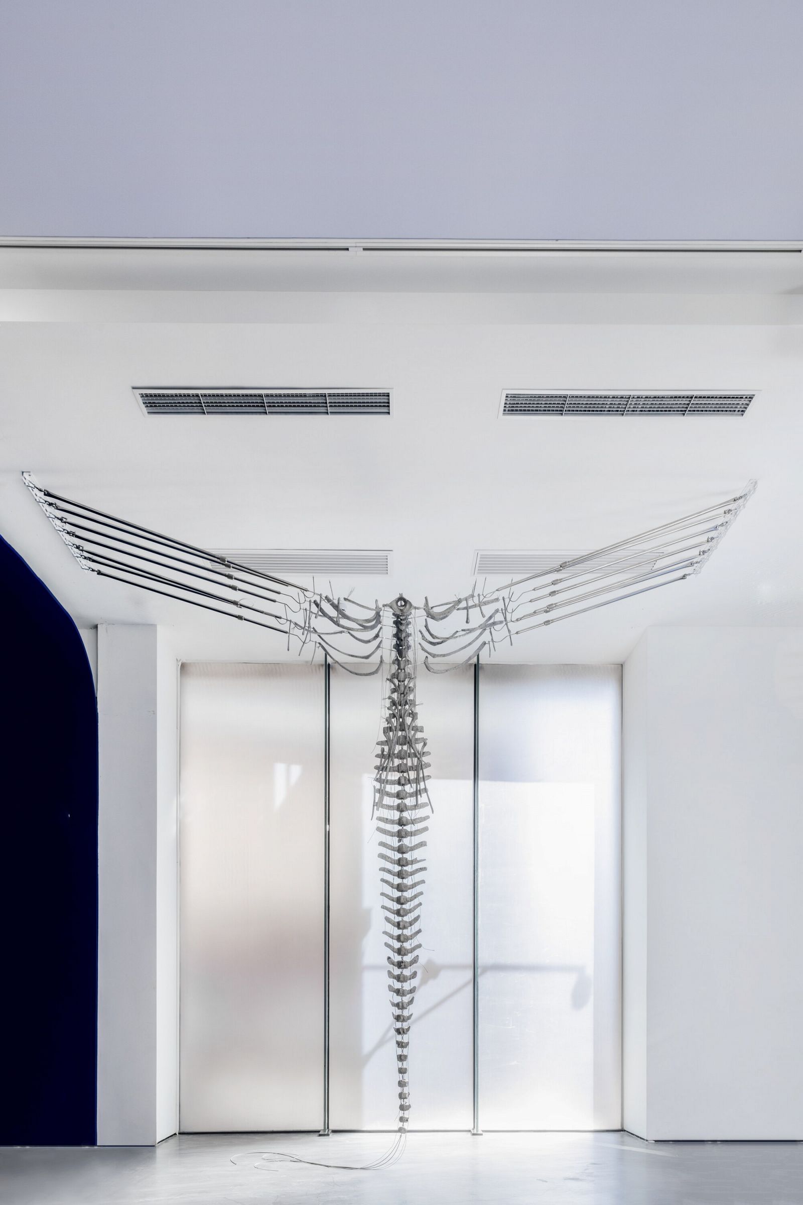 Feng Zhixuan, Wind Chimes - Sousa Chinensis, 2024, aluminum, steel, dimension variable. Commissoned MACA. An Atlas of the Difficult World, installation view, MACA, 2024. Photo: Yang Hao