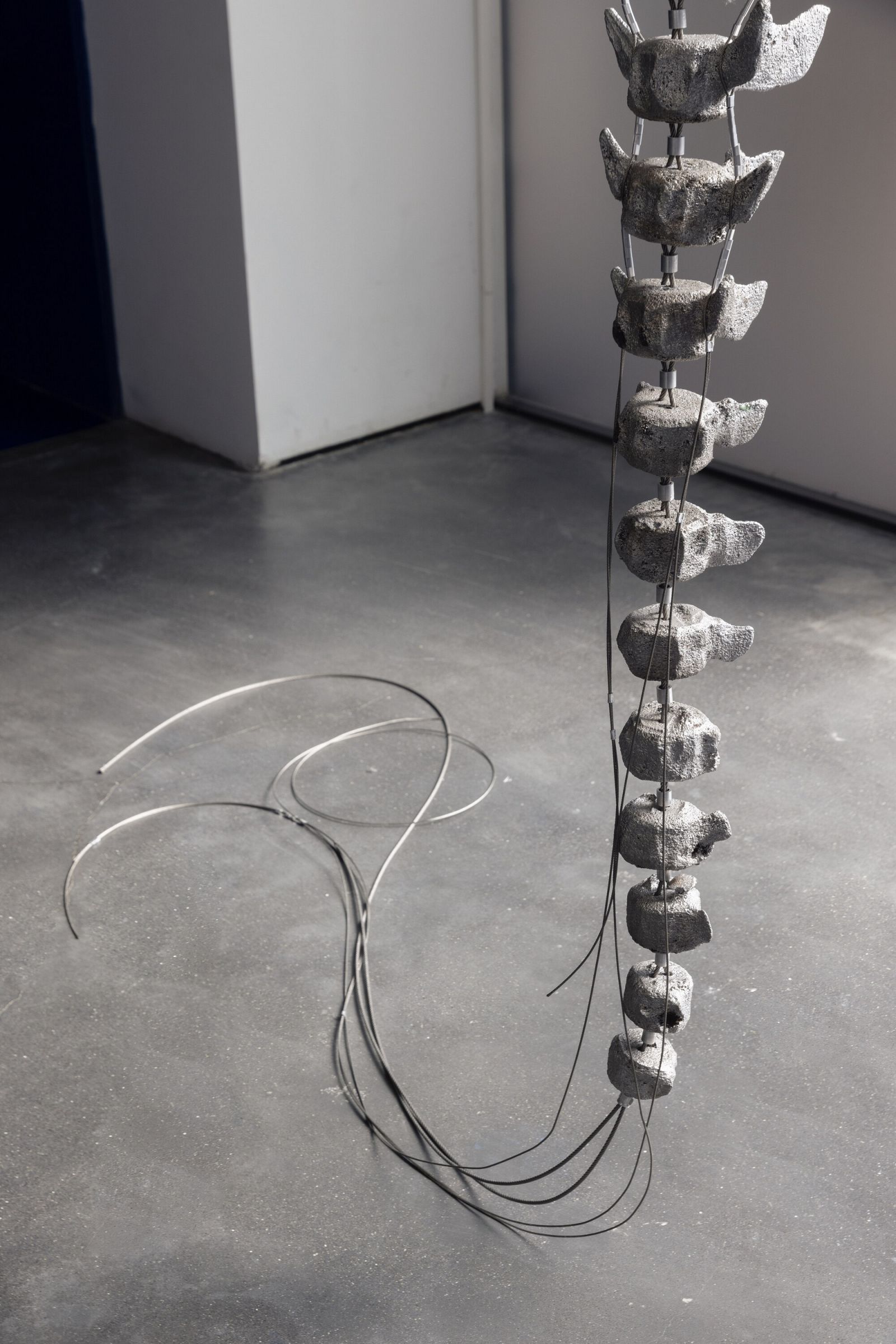 Feng Zhixuan, Wind Chimes - Sousa Chinensis, 2024, aluminum, steel, dimension variable. Commissoned by MACA. An Atlas of the Difficult World, installation view, MACA, 2024. Photo: Yang Hao
