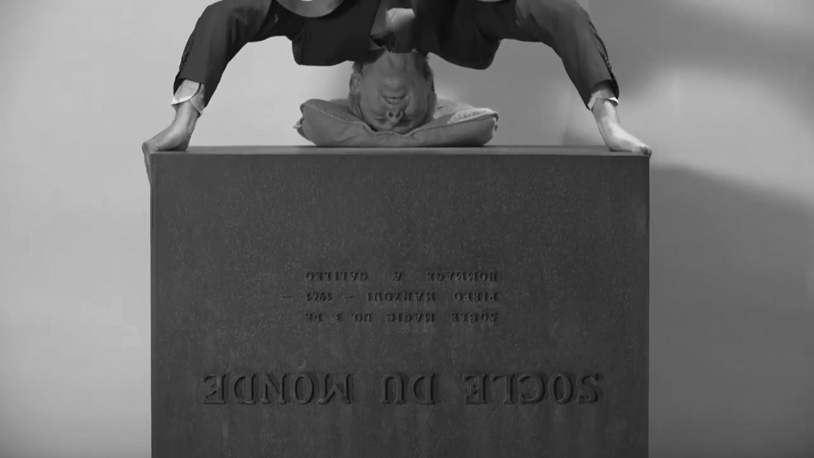 如果考虑到陆平原的这件作品类似于他出道的第一件作品,那么,成为一个现成品的说法其实更像是“成为一位艺术家”。如此,《一个现成品》指涉的现成品便有了多层含义:现成品指的可能是当时27岁的陆平原,也可能是在28岁制作了活雕塑的Manzoni,也让作品有一种传记式的气质。而在Manzoni的人生传记中,他还陆续制作了包括一件名为《世界的台座》(Socle du Monde, 1961)在内的多种版本的台座。他在后来的一些版本中,也邀请观众站上他的台座。但也就在现成物的论述在大西洋两端正要萌发的黄金时刻,艺术家在不久后便不幸过世。此时,问题来了:当身体离场,Manzoni的身体还能不能说是一尊现成品?遵照指令的陆平原,显然不只是Manzoni作品单纯的参与者。如果我们将一缕幽魂视为某种现成品,再往下想,那么,陆平原的《一个现成品》演出中的现成品概念可能就是一只薛定谔的猫。