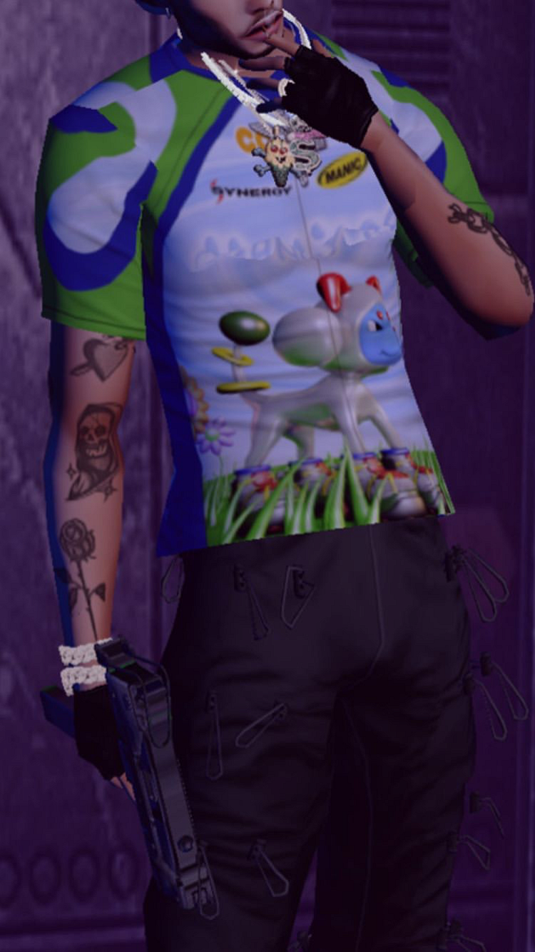尽管他们的实践始于这场全球性流行病之前,但另有一个探索时尚媒介未来的品牌是Happy99。具有讽刺意味地是,Happy99的名字源于千禧年初臭名昭著的计算机蠕虫,这种能够自我复制的病毒会破坏计算机系统,加剧了人们对于千年虫(Y2K)的恐慌。跨界的艺术家-设计师二人组娜塔莉·阮(Nathalie Nguyen)和多米尼克·洛佩兹(Dominic Lopez)最初对鞋类设计很感兴趣,但却一直挣扎于无法持续原型的开发。在重新思考了时尚环境受到的影响以及“消费”某种东西到底意味着什么之后,他们决定创作一个几乎完全虚拟的服饰系列。Happy99的艺术实践主要关注的是同时利用真实和虚拟来增强客户与品牌的联系。洛佩兹是做游戏设计出身的,他对以角色化身推动(avatar-driven)的叙事方式并不陌生。这个品牌的虚拟服饰产品以3D形式呈现,对Instagram真实用户进行了数字化的形象重建,并且其限量版也可以在IMVU平台上使用。