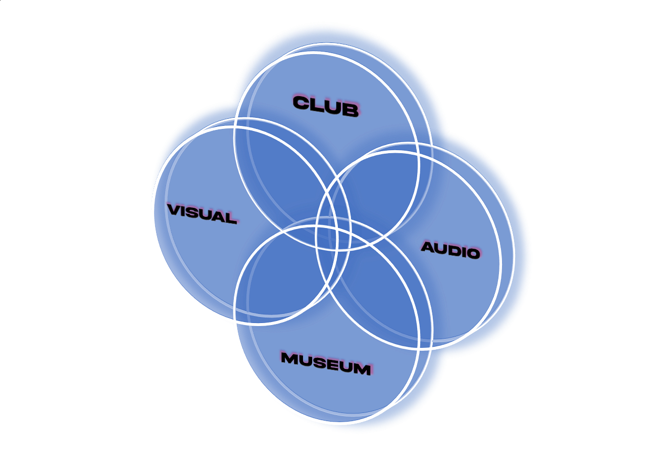 到了2017年,正当来自本地和全球的关注度都开始聚焦到这个圈子的时刻,庇护所也以ALL的名称卷土重来。当时我已经搬到北京,正沉浸在北京DADA的音箱脉冲当中。在我展开又一次的南巡朝圣之旅前,我已经耳闻ALL摆脱了庇护所原有的寒碜艰苦形象。这是我第一次见识到专为地下俱乐部音乐打造,配得上其当代气质的归宿。除了全金属、镜面、干净新墙、正式的吧台的闪亮软装和精心设计以外,我注意到了一个非常特殊的存在:屏幕。设计这个声音现场背后的藏镜人,正是那个视觉艺术家和设计师Kim Laughton。有段时间我一直在思考当代艺术视觉文化和电子俱乐部音乐的交融地带,Laughton也是核心人物,同时,ALL正是主动融合这两个领域的代表性场所,也预兆了我所说的美术馆舞池生态系。3是的,过去也有无数的当代艺术和俱乐部的交汇时刻,如伦敦ICA的展览《激进迪斯可:意大利的建筑与夜生活,1965–1975》中的那些夜店空间,我更想聚焦在俱乐部现场的视觉与声音如何发展出它在当代的新形式。