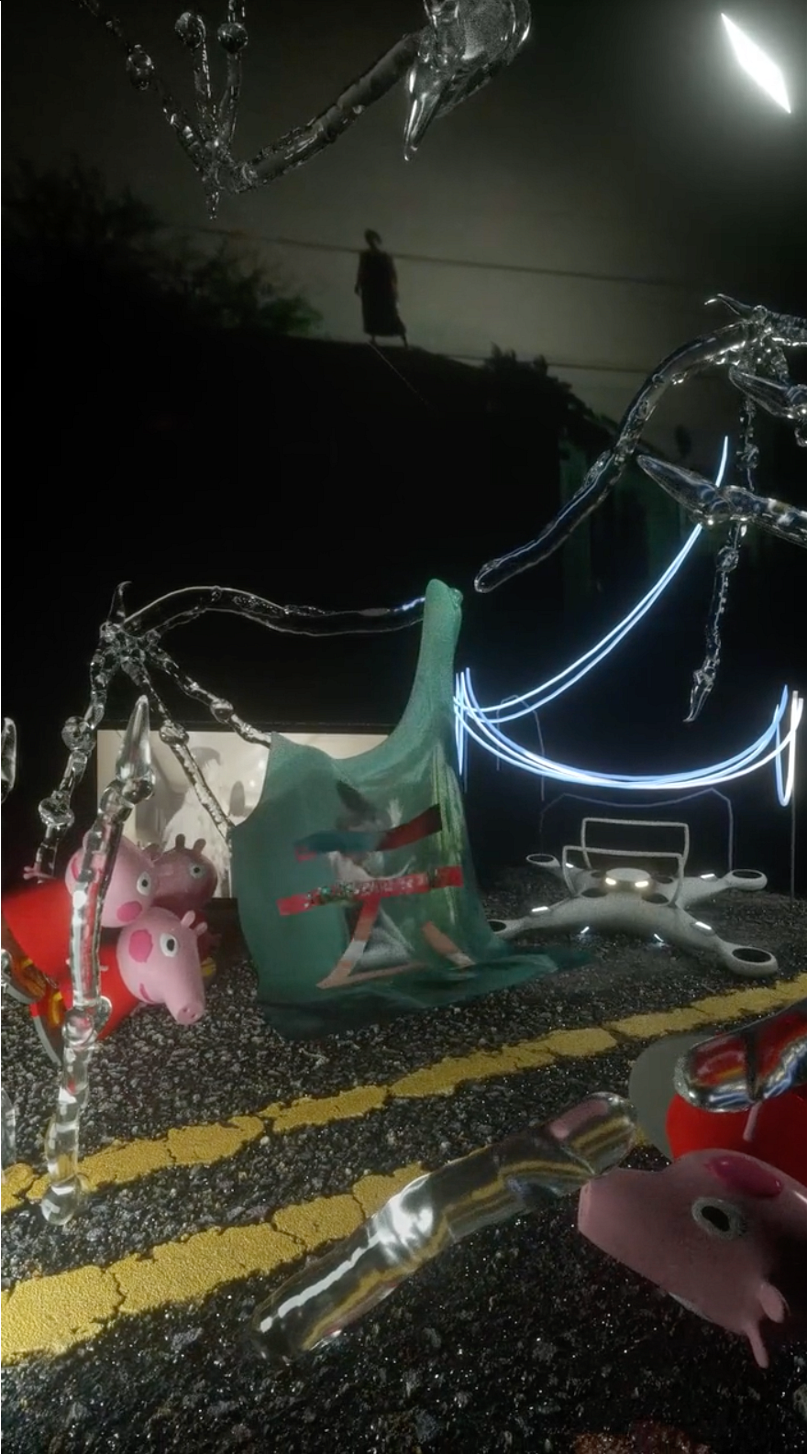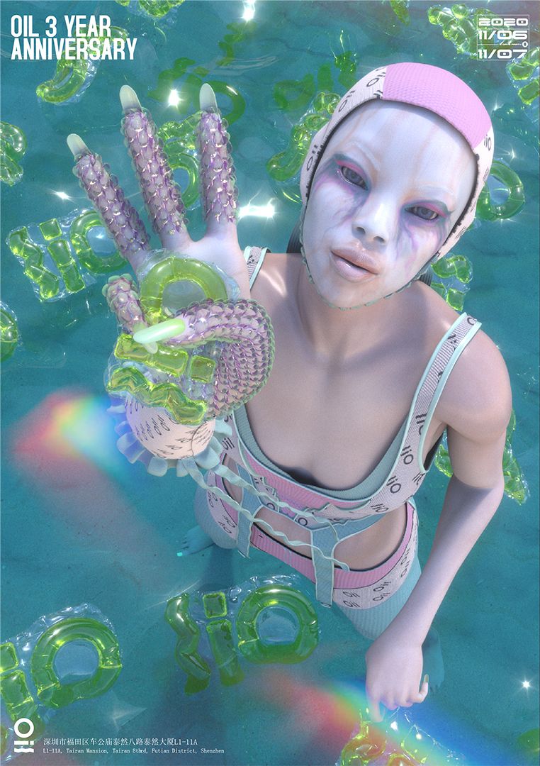 在这个让音乐人和艺术家能够进行深度合作的生态系中,关键之处在于DJ台后面的大型LED屏。4屏幕的无所不在不仅止于舞池中央而已,在ALL和OIL的入口处都有一座立式的LED屏专放表演海报和月度号外,这也促使表演的宣传设计进一步导向数码模式。 各式VJ,或者为声音表演所创作的音乐影片,如近期王新一为Hyph11E制作的视频,以及早些时候Kim Laughton和Craxxxmurf的联手。Kim Laughton的视频还是由电玩程序制作出来的,乐迷可以用游戏板改动镜头机位或者光线等各种元素。我还清楚记得当时我一面用着游戏板,突然有种感觉占据我的想法:除了老牌的克拉科夫Unsound音乐节、柏林Atonal音乐节还算能接纳这个重视视觉的俱乐部声音生态以外,就数这个中国舞池生态系会这么注重视觉了。让高清大屏幕作为俱乐部的视觉焦点还是挺特别的,你想想,世界上多数俱乐部的演出中,你的积极争取顶多赢得一部可怜的二手旧投影机投屏。而我在一次到深圳OIL做开幕DJ演出时,也意识到这个当代地下俱乐部的美学现象已经在散播,而传送视觉图像的屏幕再次成了其中的关键。此处当然还有一个反图像的潜台词:你只要想象多数俱乐部怎么劝导人们不要在舞池中用手机,就可以理解屏幕占据俱乐部核心位置的情况有多讽刺了。ALL的Sclera项目如此声称:“优待你的眼睛,与耳朵的享受同等重要”。在这些吸睛的项目中,通常是三维建模一类有科技感的艺术语言,或者非人类的精神性图像。而这类带未来感的视觉语言也仿佛说明着他们对电玩和技术发展的热衷。