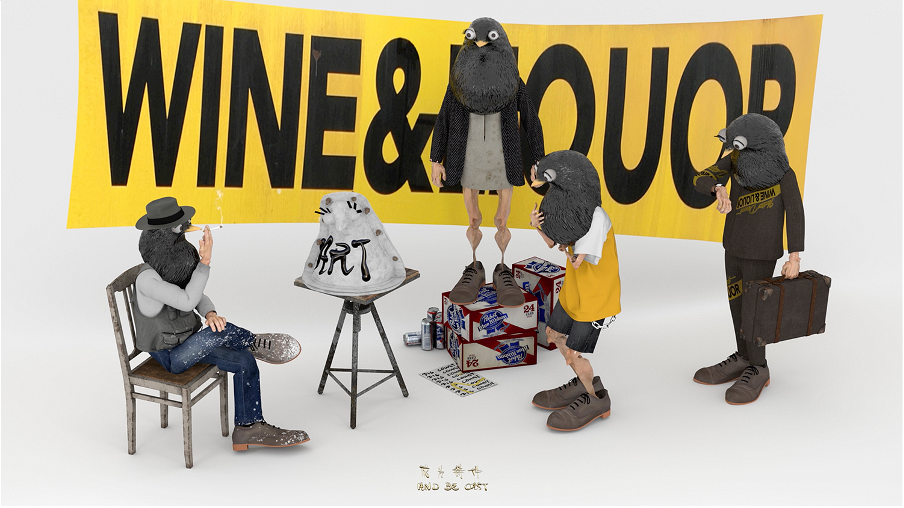 存在于居间状态的人物是我创作中不可分割的组成部分。在我正在进行的项目“鸟”中,居间的拟人化角色体现了离乡背井的旅行者充满挑战而又有趣的生活。这个系列结合了3D动画、诗歌和诙谐的电影摄影,最初的灵感来自于我多年来在不同城市收集到的鸟的涂鸦。在该系列的第一卷中,鸟在墙上的形象被转换成了沉浸在含混环境中的动画人物。这个项目融合了大都市的街头艺术——(多重身份的聚集和栖息处的改变行为大多发生于此)和卡通人物,探索与异地安置和搬迁相关的情感演变的故事。不断迁移的经历是一个聚集的过程,正如霍米·巴巴所描述的那样:“聚集在’外国’文化的边缘;聚集在边界......聚集在外语的半生半死中,或者聚集在另一种语言的怪异流利中;聚集在认可和接受的标志、学位、话语、学科中......”5霍米·巴巴.《文化的定位》。1994.伦敦与纽约:劳特利奇出版社(2004):第153页。 角色们与栖息地的固定关系脱钩,面对的是经常沉浸在自我协商中的身份、不同知识和情感的传递和转化,以及游走于居间性中的游牧主体。他们的生存环境与原来的出生地相去甚远,同时与亲缘关系同属的原生感也在不断减弱--每一次回到原来的“家”,都只是一次出差或度假。没有任何一个地点可以再被认定为真正的家了,无根的流浪变成了一种持久的生活方式。