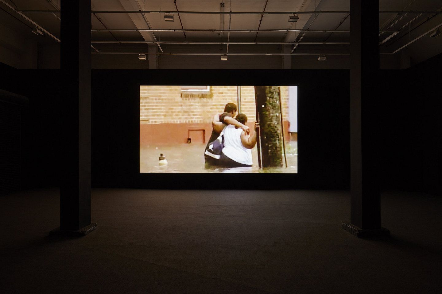 虽然这些模型可以在区域层面控制气候,比如其太阳辐射管理的提案,但贾法的作品展示了政治生态学和气候正义领域的密切关系,16关于艺术与气候正义的进一步讨论,请参见笔者特别编辑的《当代艺术与生态政治》,刊载于Third Text,2013年1月;T·J·德莫斯著,《去殖民化自然:当代艺术与生态政治》,Sternberg Press出版,2016年;以及耶茨·麦基(Yates McKee)著,《在被洪水淹没的街道上同呼吸共命运:气候正义、黑人的生命问题和非殖民化艺术》,收录于《罢工的艺术:当代艺术与“后-占领”状态》,Verso出版,2016年,第181-236页。 凸显出环境作为社会政治和技术经济不平等的发生场域。在影片里,这对关系明确地体现在非裔美国人在卡特里娜飓风洪水中的艰难跋涉。对于许多新奥尔良人来说,多年来的结构性疏忽、市政和基础设施的资金短缺、系统性的种族不平等和贫困,只会因“非自然”的灾难而雪上加霜。实际上,从大背景来看,地球工程似乎是一种技术结构,它被调动起来正是为了不解决社会不公,并将我们对环境的理解限制在生物地球物理的领域内。《爱是讯息》展示了警察的暴行是如何作用于美国环境管理的日常(有时是奇观式的)意义的,它将环境控制具体到了种族化和阶级化的具象层面上。我们见证了白人至上、灾难资本主义和专制新自由主义是如何在如此细微的层面上运作的,这些模式如今已成为特朗普主义的代表,而特朗普主义本身就是人类世合理性之病态的典型实例。17罗宾逊·迈耶(Robinson Meyer)著,《特朗普是人类世的第一个煽动者》,刊载于The Atlantic,2016年10月19日,链接;以及克里斯托弗·沙伯格(Christopher Schaberg)著,《在人类世中的特朗普》,刊载于Sierra,2017年2月1日,链接,“我们必须承认特朗普是我们世界当前状态的特有病症。他霸凛的推文和破坏性的行政命令,他选择污染严重的化石燃料而非清洁可再生能源,他的’我们对抗他们’和’美国优先’的道德观,都暴露了最初让我们成为’人类世’的病态。”