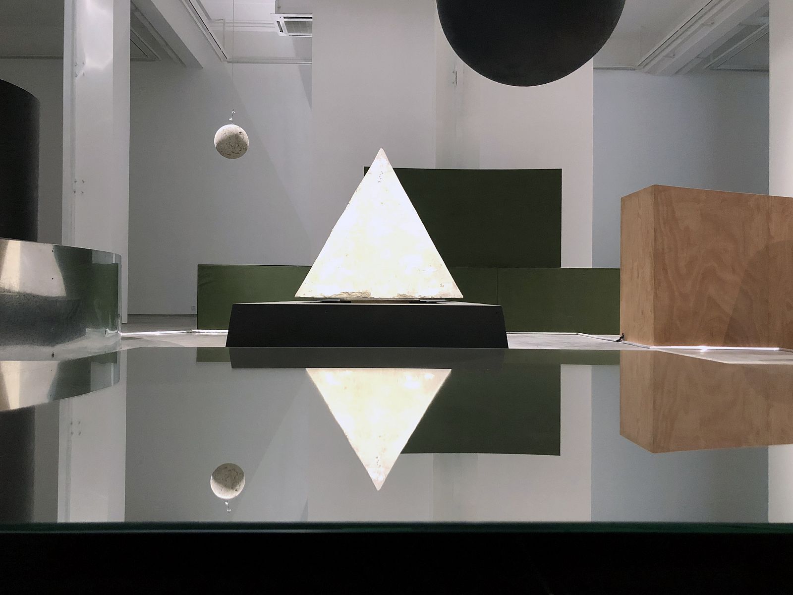 事物的重量随着我们在公众场合所受的期待而增加。艺术家作品也总被预期作出宣言般的力度——要有足够震撼的突破,而又要平衡创作上的延续性,延续生产力。刘韡显然表达了这点。甚至可以说,他那组在吊轨上穿行的未知星系作品,呈现的是某种事物平衡规律的自动化机制;然而,另一个微型的宣言也嵌套在其中,就像爵士乐中不对称的波普乐句。子句有时候比它所从属的母句更有分量——这是力与质量的幻觉,是作品中最为炫技的部分。这也是知觉在发挥威力。