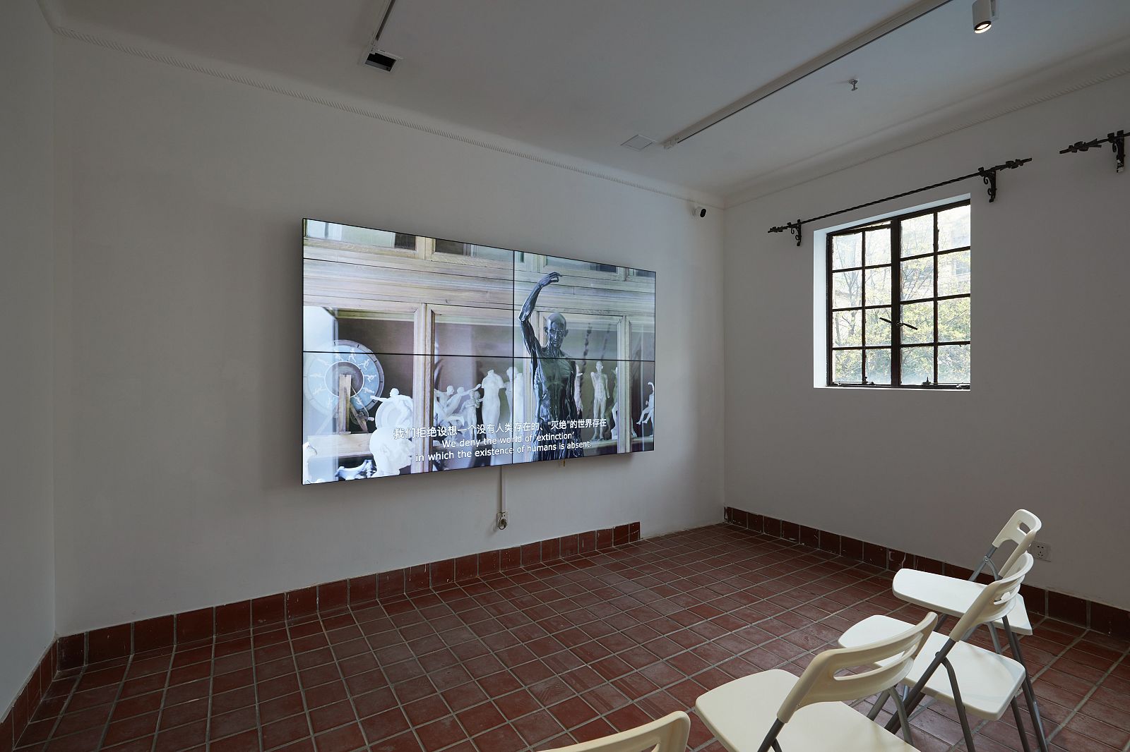 藤井光,《解剖学教室》,单通道2K录像,彩色,有声,36分40秒,2020. “每一次沉默都是隐蔽空间”展览现场,花厅计划. 摄影:叶枫荻