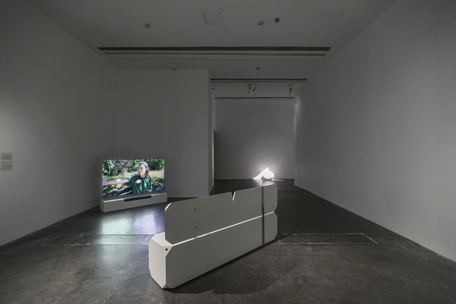 How lucky we are to describe an exhibition from 2020 as “relaxed”? For much of this past year, we have had to attune our minds and body to confront sudden shifts in the present: a world connected unevenly and unfairly through a global pandemic, the closure of national borders in the name of national interests. Its effects manifested not only on international travelers for business, biennales, and higher education but also on the migrant workers whose livelihood depends on the rhythm of mobility—those who work on luxury cruises or hop between tropical islands to make a living. On this topic, Hu Wei’s hour-long eco-fiction Land Below the Wind (2020) captures the precarious lives of the second-generation immigrants residing on Malaysia’s Dinawan Island. The footage of this film was gathered during the artist’s island residency in summer 2019, but its’ postproduction was hampered by the prolonged isolation of the pandemic lockdown. This temporal gap demands our reflection on the relationships between collectivity and the self, between artistic production and world-making, and between thought and praxis.
