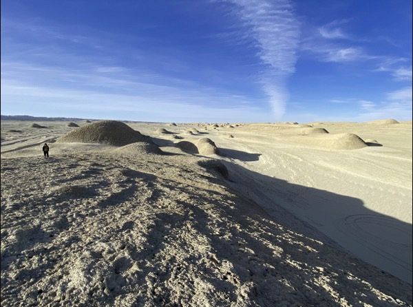 I recently went to Lenghu, where Qinghai meets Gansu and Xinjiang. Once an oil city, Lenghu is now a Mars simulation area. Mongolian and Tibetan ethnic groups, as well as various mining projects for natural gas, mirabilite, rock salt, potassium chloride, and lithium chloride, all converge here. It was in this place that we unearthed relics of a civilization in which people picked crystals on the mountains as food. The larger humans picked the high-energy crystals at the top of the mountain, and the smaller humans excavated coarse crystals at the foot of the mountain. Similar to the way that oil comes from the remains of plants and animals, humans transformed into various kinds of gems, jades, and granite after they died. Essentially, the rocks that are visible in the real world are the mother and grandmother rocks of this civilization and form the genealogy of an “ethnicity.” The crystal people developed a series of rituals that venerated an individual’s body; their excrement, hard as rocks, served as currency, and it was customary for two people to shake feet upon meeting because that was the softest part of the body. Their most serious punishment was to restrain or otherwise restrict the movement of the body; they used the bones of their ancestors as proof of their identities.